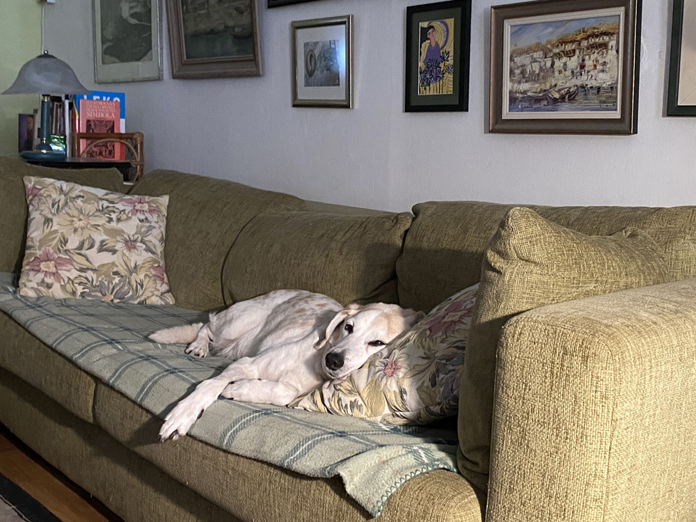 …mir donosi pogled na Hektora, spava. U dubokoj starosti naš ljubimac. Dočekaće on Proleće, ne samo jedno, nadamo se.