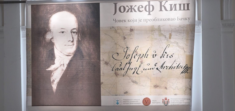 Iza intrigantnog naslova izložbe Jožef Kiš: Čovek koji je preoblikovao Bačku „krije se sudbina čoveka imenovanog u nazivu geodete, inženjera arhitekture, kako se govorilo u njegovo doba – bio je hidraulik. Bavio se pretvaranjem vodoplavnih površina u plovne tokove, a njegov najznačajniji projekat je Veliki bački kanal, najveći građevinski poduhvat na prostoru Austrije u vremenu kada je nastao”, kaže autorka izložbe dr Mirjana Đekić uz dodatna objašnjenja “da je projektovao i objekte profane arhitekture kao što su gostionice, suvače, rakidžinice, crkve, parohijske domove, od 1799 – 1813. godine škole koje su mogle da prime do 400 đaka. Projektant je naselja u Bačkoj kao što je Crvenka 1785, uradio je plan preuređenja Bačke Palanke u istom periodu, planove za uređivanje Apatina. Projektovao je Gradsku kuću u Subotici. Njegova iskustva bila su raznolika, poznavao je Bačku, svoj zanat, a na putovanja po Engleskoj naučio je kako treba da realizuje to što je želeo”.